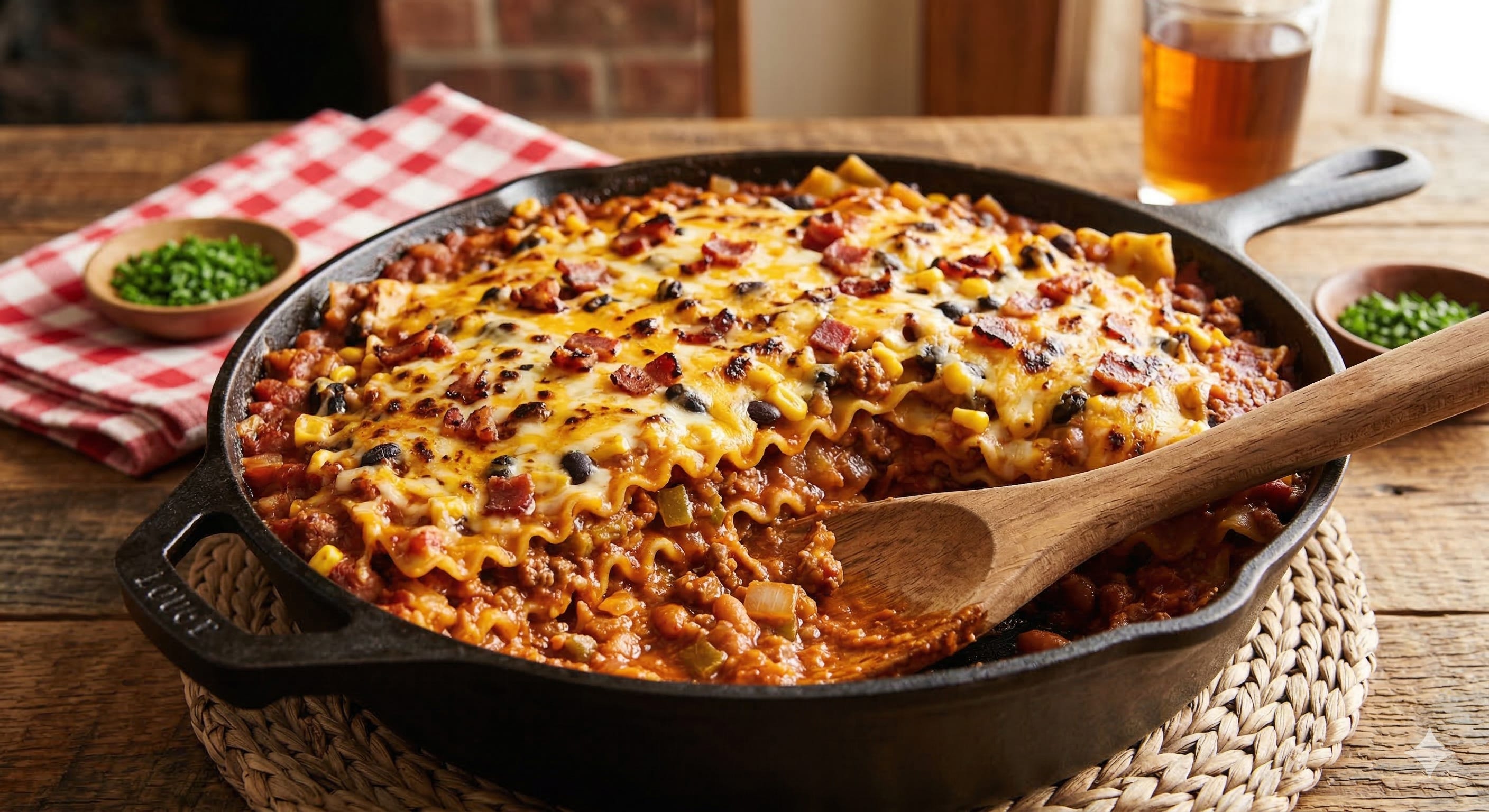 I came across this recipe out of sheer, ‘I just don’t want to go to the store.’ I didn’t create this recipe, however, I did tweak it to my own liking and I encourage you to do the same. I had a mis-match of items in the pantry, some lasagna noodles, a jar of pasta sauce, some baked beans etc… I went to google and put all of those ingredients in the search bar and lo and behold, out came a recipe for Cowboy Baked Bean lasagna.